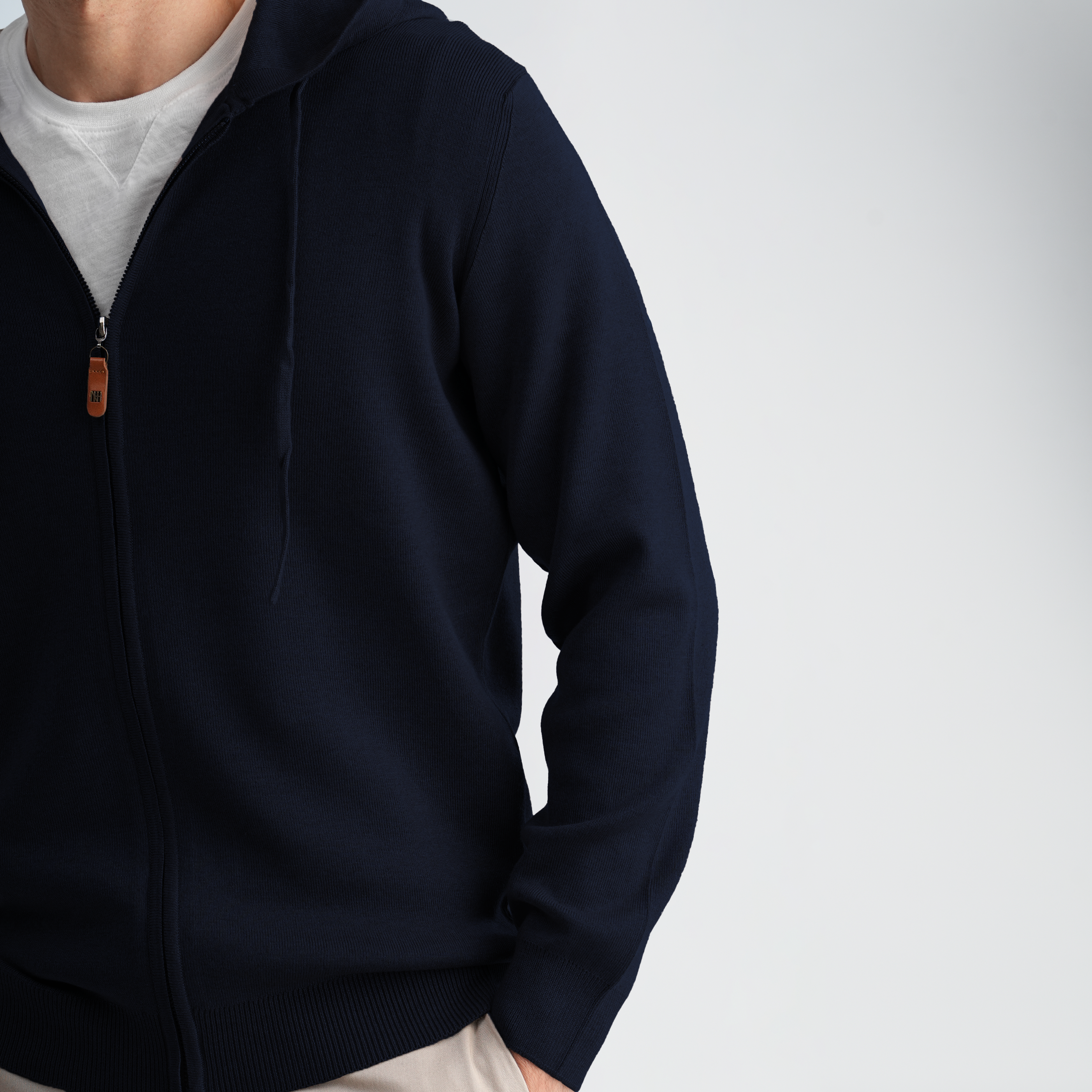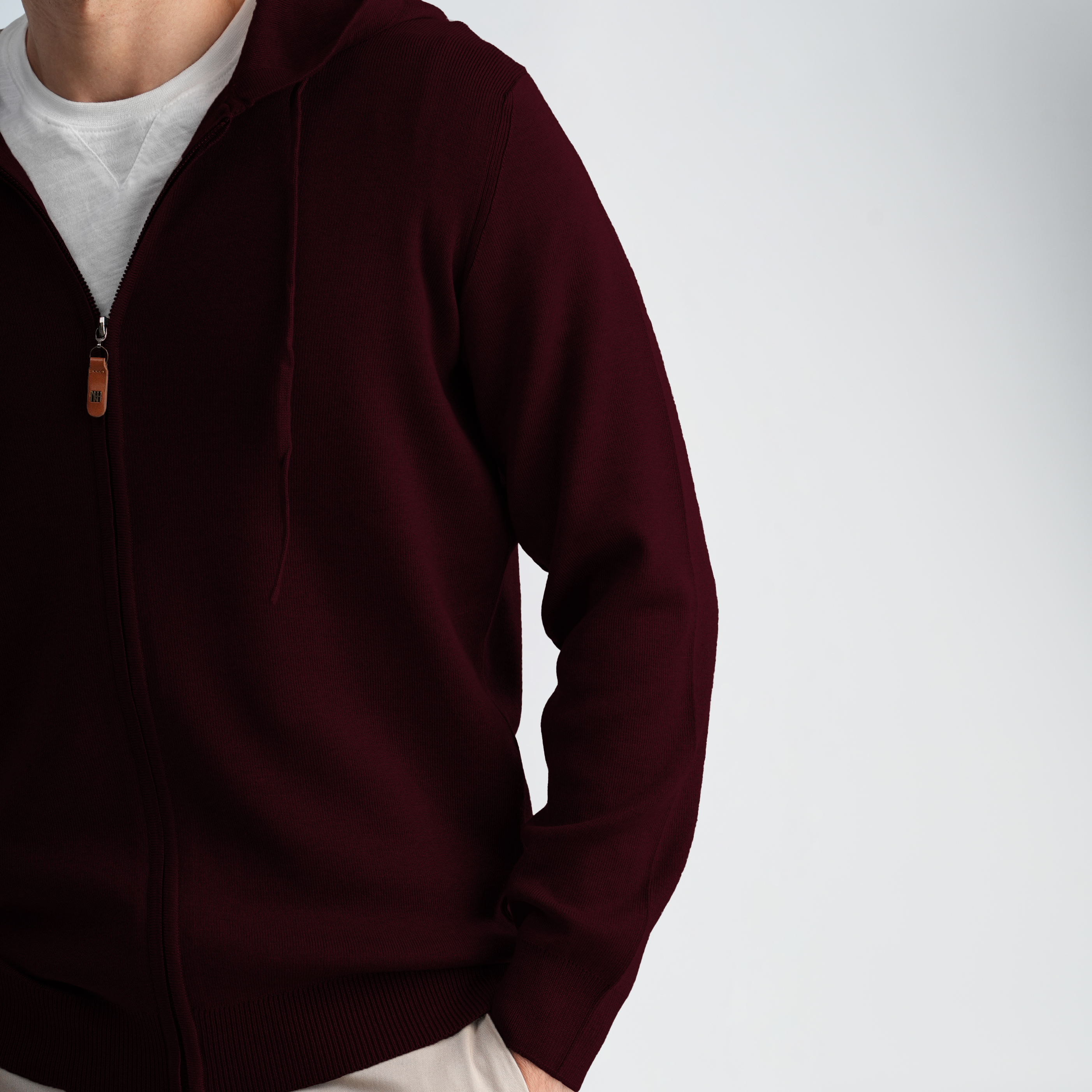 This is a refined, comfortable knit hoodie that offers the warmth of a sweater and the ease of a full-zip jacket.